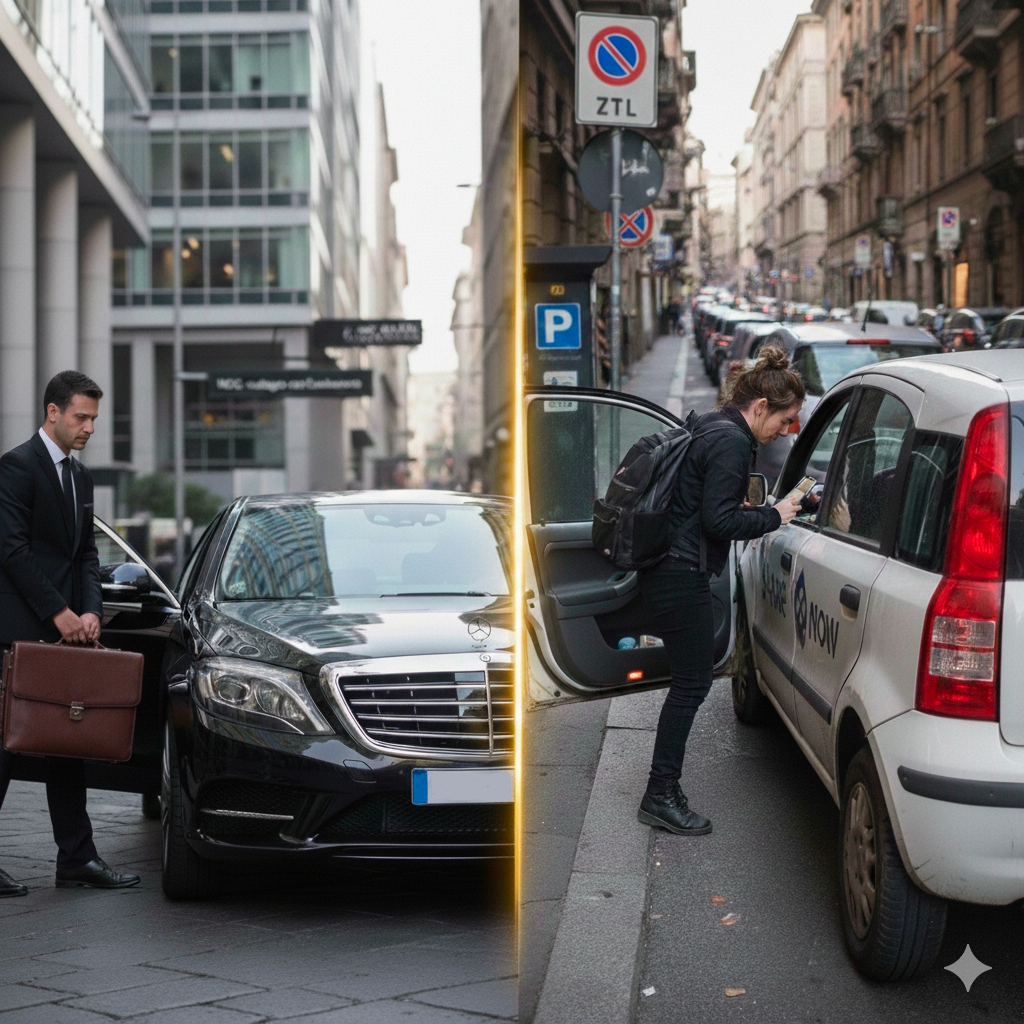 NCC vs Car Sharing L’evoluzione della mobilità: dalla necessità all’esperienza di lusso Perché il vero privilegio non è guidare, ma farsi condurre. Nel frenetico panorama urbano contemporaneo, la mobilità è diventata un bivio strategico. Da un lato abbiamo la massificazione del trasporto “fai-da-te” rappresentata dal Car Sharing; dall’altro, l’eccellenza sartoriale del Noleggio con Conducente (NCC). Sebbene entrambi promettano di portarvi a destinazione, l’abisso che li separa non riguarda solo il mezzo di trasporto, ma la